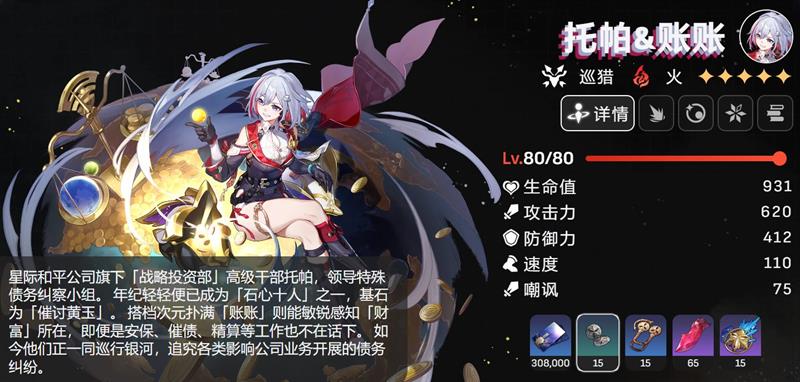 托帕&账账、杰帕德、瓦尔特、布洛妮娅、希露瓦、艾丝妲的角色升阶(突破)和技能行迹升级都需要消耗铁卫扣饰。