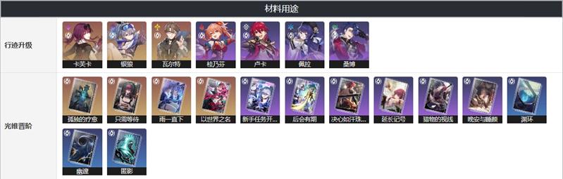 卡芙卡、银狼、瓦尔特、桂乃芬、卢卡、佩拉、桑博等角色行迹升级都需要消耗黯淡星耀。