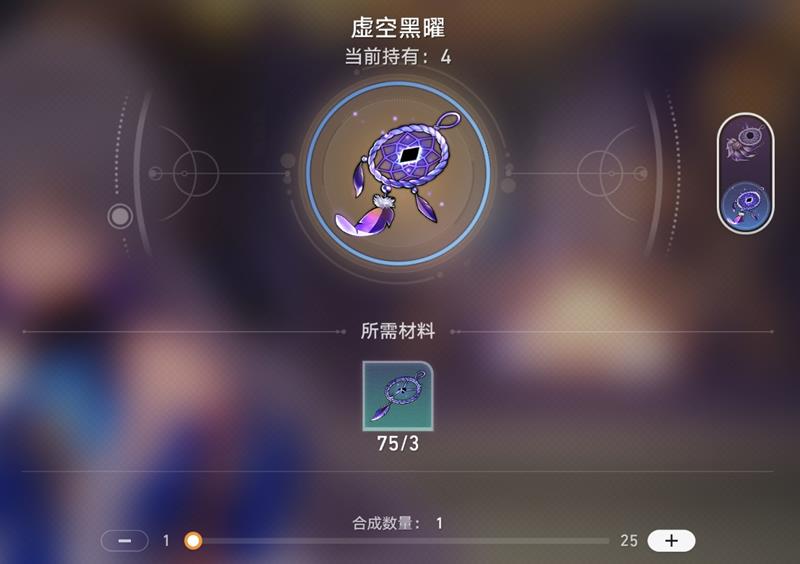 3个黯淡星耀可以在材料转换机中合成1个虚空黑曜。