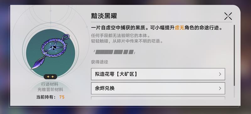 一片自虚空中捕获的黑质。可小幅提升虚无角色的命途行迹。