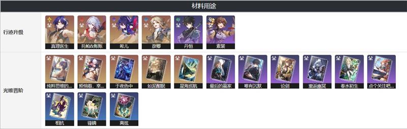真理医生、托帕&账账、希儿、彦卿、丹恒、素裳等毁灭命途角色行迹升级都需要消耗猎兽之矢。