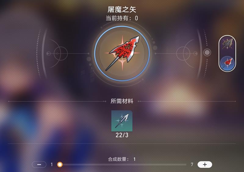 3个猎兽之矢可以在材料转换机中合成1个屠魔之矢。