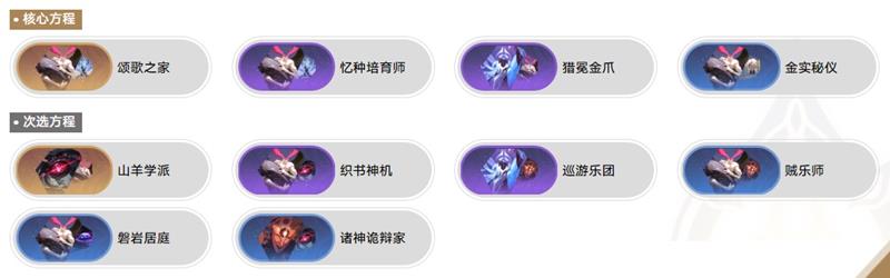 山羊学派、织书神机、巡游乐团、贼乐师、磐岩居庭、诸神诡辩家