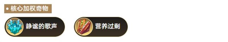 核心推荐【静谧的歌声】和【营养过剩】。新差分龙丹够强,没有能用的加权奇物也无所谓。