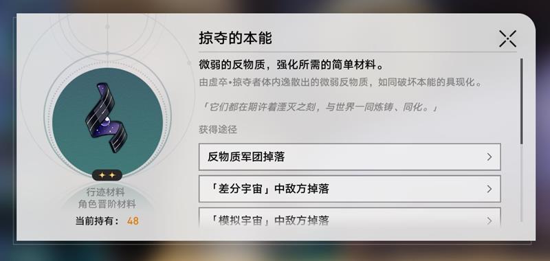 崩坏星穹铁道的掠夺的本能是一种角色养成材料,很多开拓者想要知道崩坏星穹铁道的掠夺的本能有哪些用途,我们一起来看看吧。