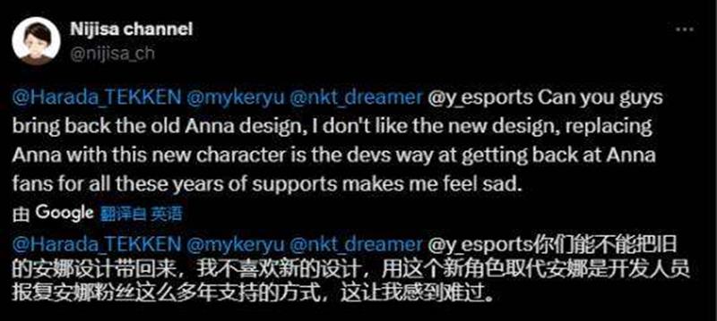 对此,《铁拳》系列制作人原田胜弘发表了一段超长评论回怼了这位玩家,原田胜弘认为就算绝大多数人都喜欢新造型,总会有不喜欢的人,在以前的作品里有旧的设计,我不会把她从你身边夺走,但你并不能代表所有安娜粉丝。