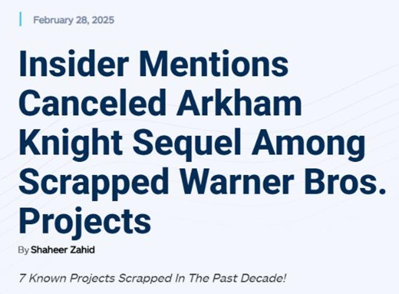 近日,知名记者Jason Schreier近日盘点了华纳兄弟公司过去十年间被砍掉的多个游戏项目,其中包括由华纳蒙特利尔开发的《蝙蝠侠:阿卡姆骑士》续作。