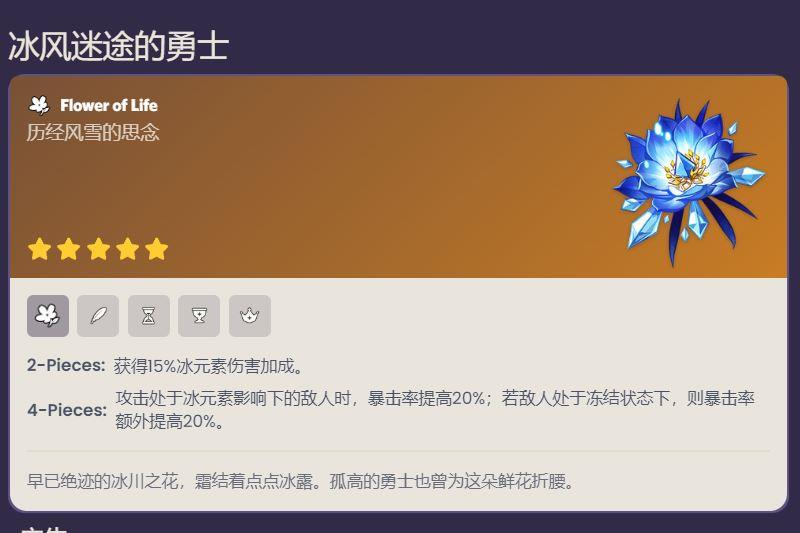 冰风迷途的勇士套装则专注于提升冰元素伤害,进一步强化其冰元素输出能力。
