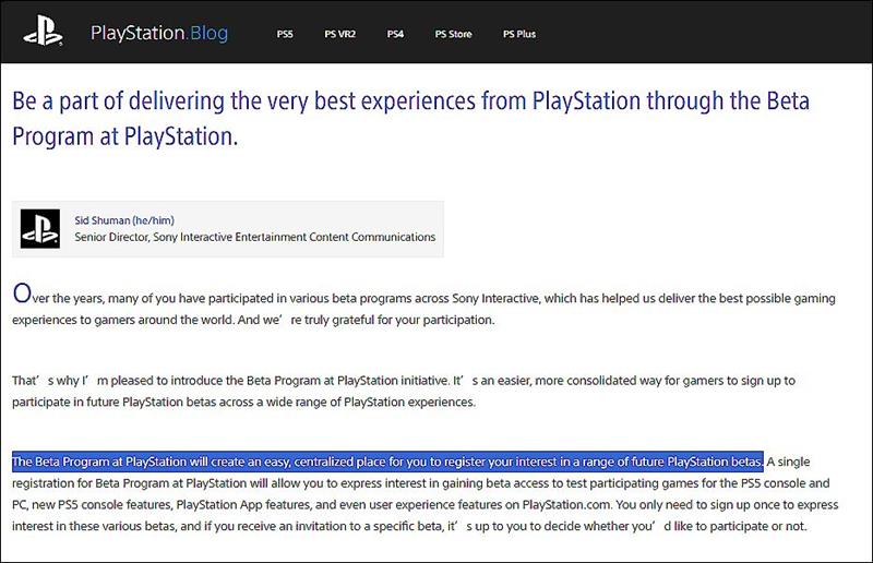 索尼互动娱乐内容沟通高级总监Sid Shuman表示,新的Beta计划将为玩家提供一个便捷的集中注册点,以便参与各种PlayStation的Beta测试。