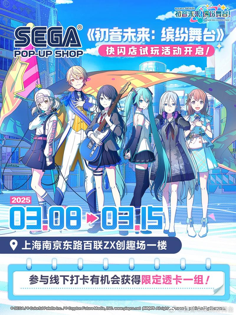 初音未来缤纷舞台线下快闪店活动开启,世嘉首个中国快闪店已于1月25日在上海百联ZX创趣场正式登陆。