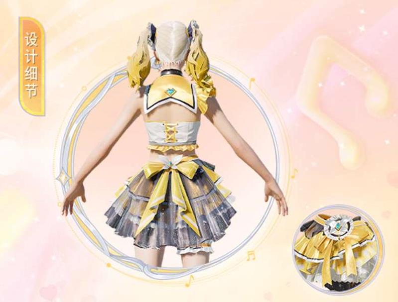 双马尾卷发,如被阳光亲吻过的金色波浪,搭配亮眼的黄色蝴蝶结发箍,元气满溢,尽显少女偶像的青春魅力。