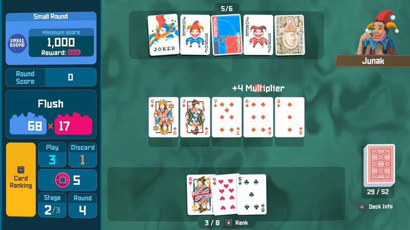 此外,牌型判定功能也尚未完全复现,例如玩家手中有“对子”和三张随机牌时,系统仅能识别为“对子”。尽管如此,《小丑牌》凭借其简单易上手的操作与深度玩法,被认为与便携设备的适配性很高。