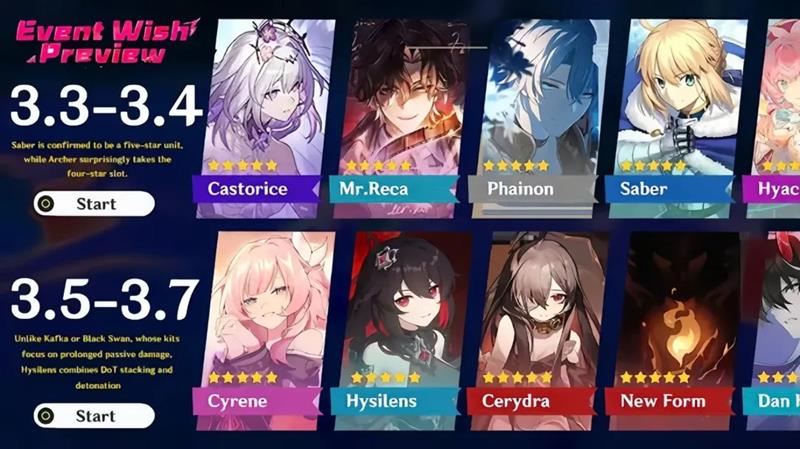 3.5版本卡池则由海瑟音和刻律德菈登场,海瑟音此前在官方PV中以紫发少女形象出现,据称是DOT队卡芙卡和黑天鹅的队友,不过这一消息尚需进一步确认。