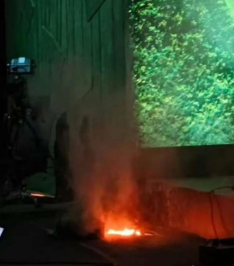 我们可以从现场传出的图看见,场馆已经出现了明火,现场烟雾较大,好在无人员伤亡。