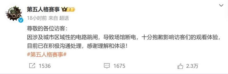 值得一提的是,当天比赛可谓风波不断,在下午的比赛中第五人格场馆也曾出现停电风波。