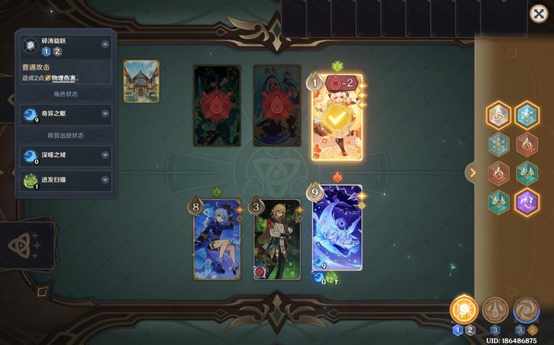 第四回合只需要一个水骰,投掷阶段寻找水骰子。吞星之鲸释放普通攻击,即可获得对局胜利。