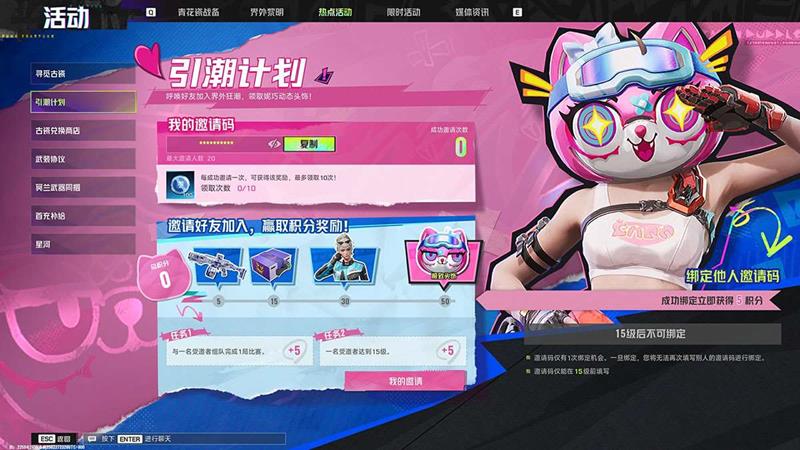 新玩家在15级以前,均可在引潮计划界面填写邀请码。