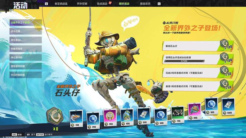 新界外之子活跃活动,完成对局、对局胜利获得积分解锁奖励。