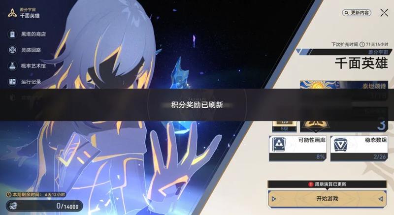 全新的模拟宇宙积分已更新,各位开拓者别忘记刷下差分宇宙。如果想要抽取遐蝶的话,也可以提前刷遗器!另外,官方将会在3月12日放出全新的位面分裂活动,提前祝各位词条不歪,直接毕业。
