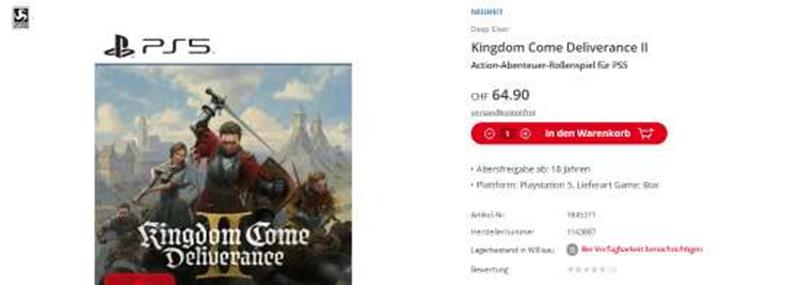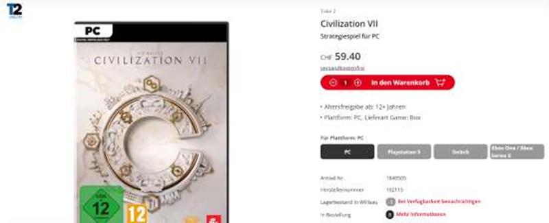 这一价格远高于其他大型新作,例如《天国:拯救2》PS5版售价为64.90瑞士法郎(约合人民币534元),《文明7》PC版售价为59.40瑞士法郎(约合人民币488元)。