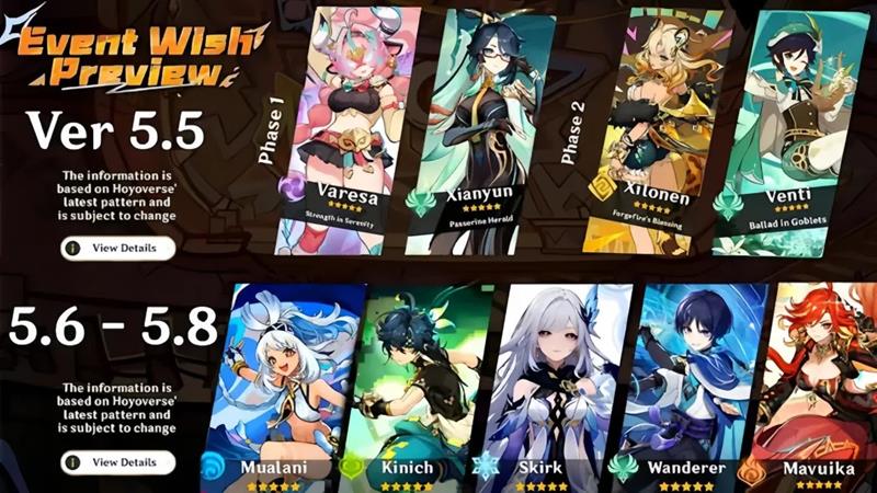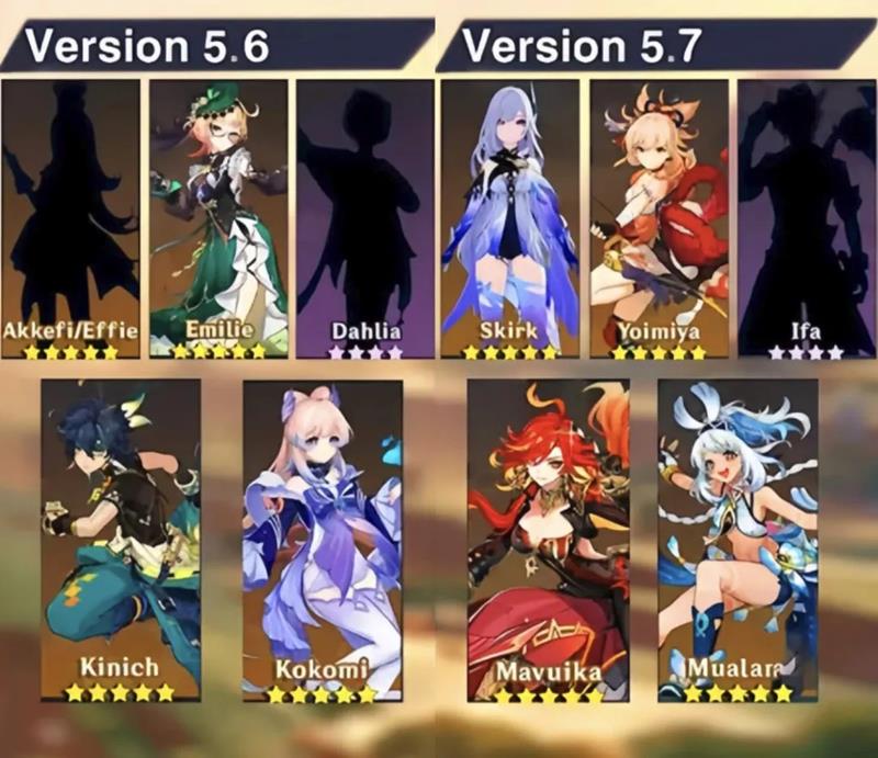 据网传消息,5.6版本卡池将有冰后台女辅爱可菲与火系法器角色伊法登场,5.7版本卡池则是丝柯克与塔利雅双冰角色同时出现。至于5.8版本,目前虽有诸多猜测,但官方尚未明确,不过有消息称该版本可能迎来新角色空降,且新皮肤或为夜兰的,这无疑让众多旅行者充满期待。