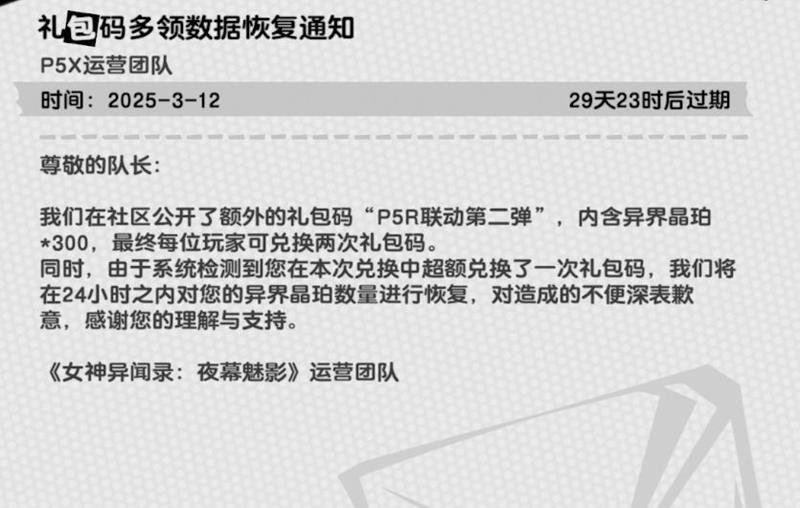 然而,事情并未就此结束。那些已经领取过两次礼包码的玩家,收到了官方收回部分奖励的通知,这一举措再次引发了玩家的不满。最终,官方通过复杂的操作,确保所有玩家获得了600晶珀的补偿,但这一过程却得罪了几乎所有玩家。