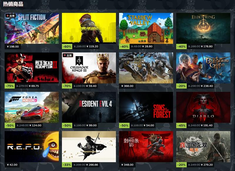 此外,《艾尔登法环》和《星露谷物语》等热门游戏也都以40%的折扣分别售价179元和29元。