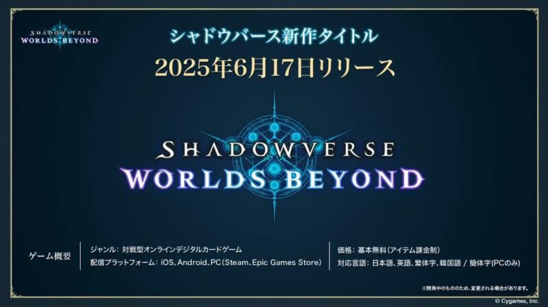 Cygames今日正式公开了《影之诗》最新续作《影之诗:Worlds Beyond》(中文译作《影之诗:超凡世界》)的首个预告片,并公布了详细上线日期。该作将于2025年6月17日正式登陆PC、iOS及Android平台,同时全面支持中文。