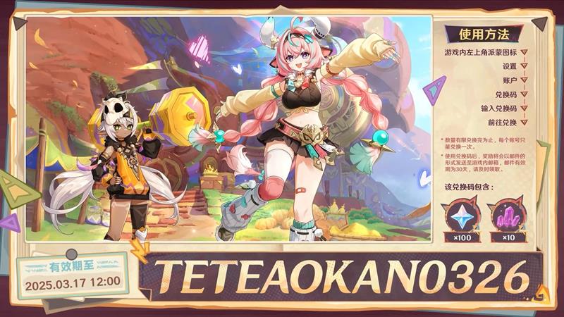 兑换码包含:原石x 100、精锻用魔矿x 10