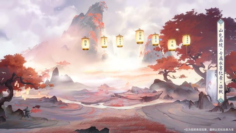 群山远黛流云冉冉,明灯数盏映亮满目绯色。烟雨朦胧恍入画中仙境,枫林渐变点染云岫黛眉。青松静聆溪水潺潺,邀君共赏此番天地……
