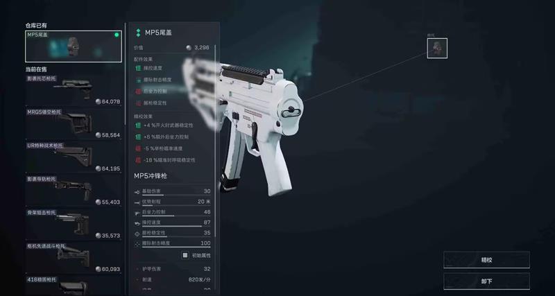 改装的核心是MP5尾盖,这是整把枪的灵魂配件。它不仅能够提升操纵速度,还能显著提高腰射精度,为后续的配件搭配奠定基础。