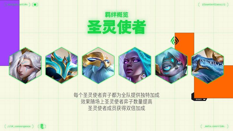 圣灵使者持有令人生畏的资源和冷酷无情的计划,能为你的队伍提供独特属性加成,并随场上企业成员的数量一同增加。无论你认为这是资产保护、收入共享,还是羁绊效果,总之,圣灵使者们的羁绊加成翻倍。好了,来看看是谁像对待冗余成本一样冷酷无情,把你的对手们一个个送走吧。