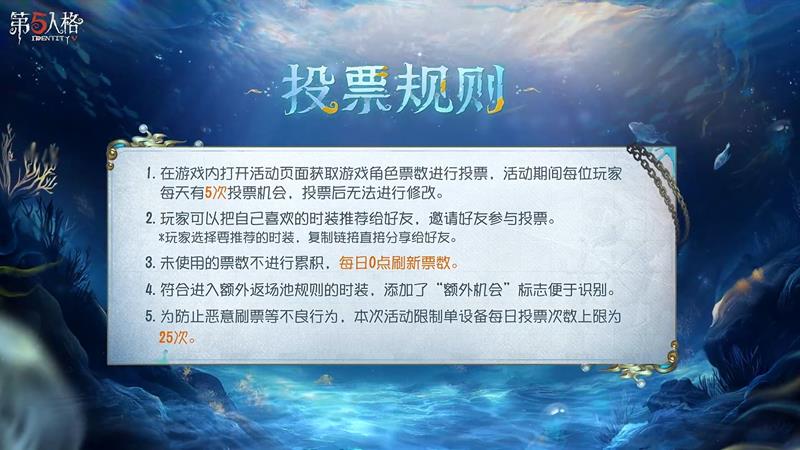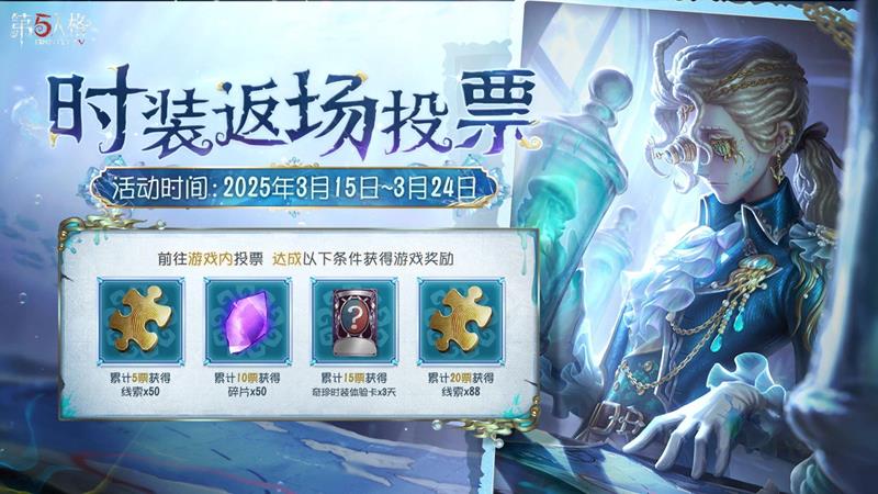 第五人格七周年的返场时装投票活动开启了,各位参与投票可以获得游戏内的奖励,同时得票最高的时装将会于一周后进行商店返场,下面是详细的活动信息,我们一起来看一看。