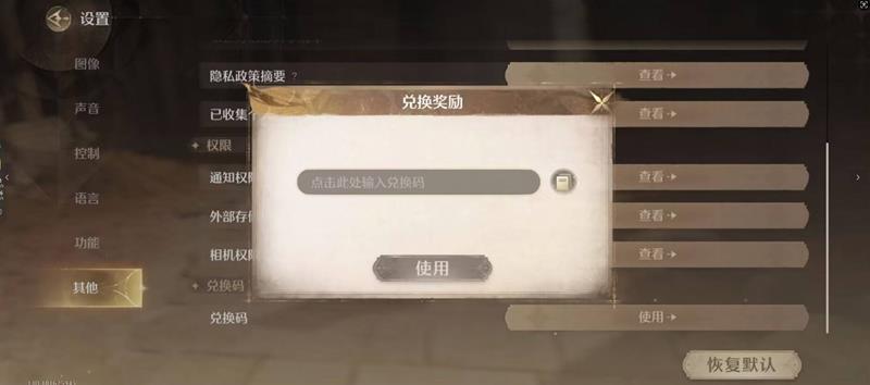 之后点击兑换码后方的【使用】按钮,在弹出的窗口中输入兑换码并点击使用按钮即可兑换奖励。