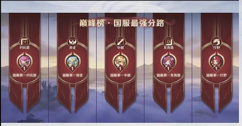 ③国服最强巅峰分路称号:每月1日结算发放,即国服最强打野/对抗路/中路/发育路/辅助。