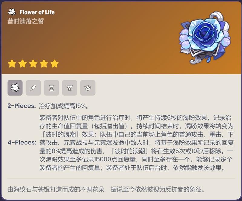昔时之歌是闲云的另一套优质圣遗物选择。其4件套效果可以显著提升闲云释放元素爆发后的治疗和增伤能力,这与闲云的元素爆发“暮集竹星”完美契合。当施放元素爆发后,昔时之歌的效果能够让竹星的持续治疗量大幅提升,同时也能增强队伍中角色的下落攻击伤害,进一步强化闲云的辅助能力。所需词条与前面两套相同。