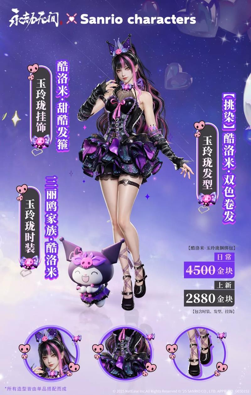 我们可以看见,三丽鸥家族的经典角色如Hello Kitty、酷洛米、大耳狗等与《永劫无间》角色的跨界融合,推出一系列限定皮肤。