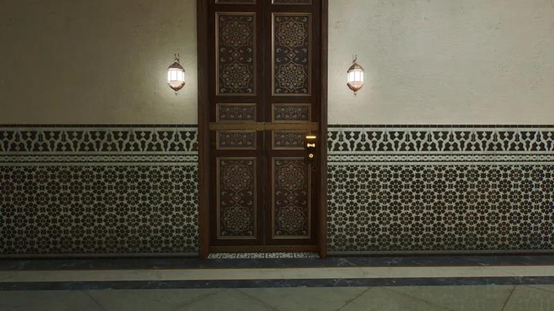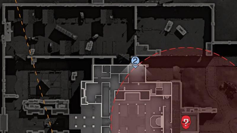 在开门前,干员可以按照下面地图所示,先来到王子房的窗户前,透过玻璃观察房间内散落物。