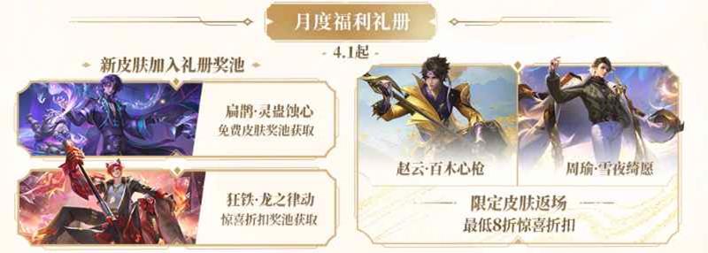 源·梦系列新皮肤:狂铁的“龙之律动”皮肤将于2025年4月1日月度福利礼册开启后上线。玩家可以通过完成每日任务获得折扣刷新币,前往“惊喜折扣奖池”刷新该皮肤折扣,最低可以60点券购买。