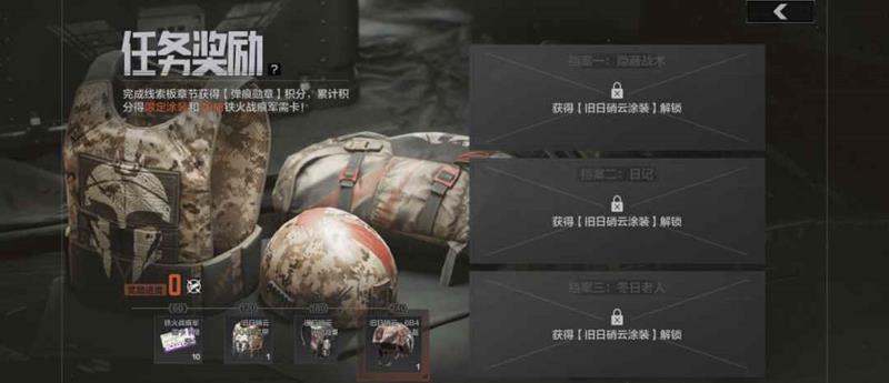 完成章节任务即可获得“铁火战痕”军需卡×10张,以及KN制式防弹衣涂装、运动背囊涂装、6B4型头盔涂装等专属外观奖励。