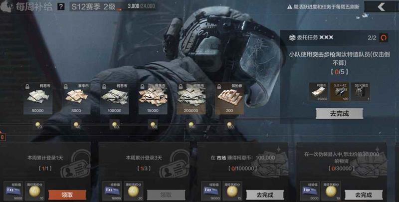 完成每周任务,次周登录即可领取4格安全箱(3天体验卡,领取后28天内有效),助你更轻松携带战利品撤离!