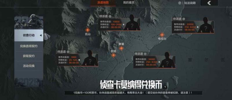 值得一提的是,本次行动属于高风险高回报,派遣伙伴战备值越高,穿戴装备越精良,选择地图越难,所带来的收益也越多!