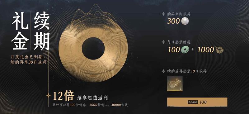 性价比高:售价30元,购买后能直接获得300长鸣珠,每天还能领取100长鸣玉和1000宝钱。这些资源可以用于购买游戏内的各种道具和外观,对于提升游戏体验有很大帮助。
