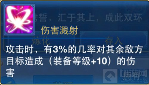 攻击时,有3%的几率对其余敌方目标造成(装备等级+10)的伤害。
