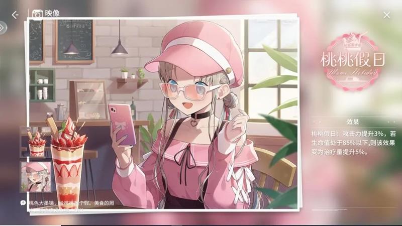 桃的第一个技能名为偶像节奏,演唱会开始时她会展开偶像舞台开始演唱,为周围的友方队员提供相当于其最大生命值一定比例的持续治疗效果,并根据范围内友方队员的数量提升暴击率。第二个技能为回声合唱,桃会发出热情的旋律并邀请附近的“观众”参与到她的演出当中来,对被命中的敌人造成远程魔法属性伤害,并根据命中的目标数量提升友方队员的暴击伤害。必杀技名为舞台时刻,当桃使用演唱会时可以复活范围内的队友,并为其回复生命值,该效果每60秒只能触发一次,复活后队友生命值为25%最大生命,同时提升最大生命值4%。