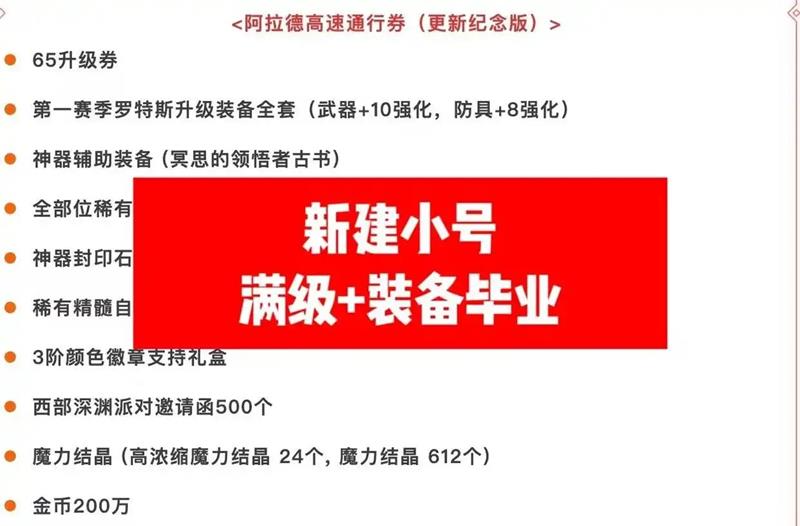 对于新玩家来说,本次更新也提供了极大的福利。更新后,新建小号的玩家将直接获得秒升65级的顶级装备套装、500张深渊票、200万金币以及神器附魔和稀有徽章大礼包。如果角色栏不够用,商城还会免费赠送扩展券,让新玩家能够快速融入游戏,享受游戏的乐趣。