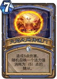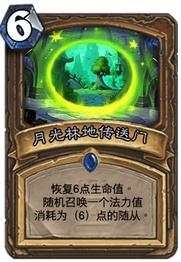 从这张牌开始,接下来的几个传送门的实用性大大增强了。这张卡作为德鲁伊的职业卡,应该说是比较实用的。首先从模型上来讲,6费召唤一个随机的6费随从顶多会亏1到2费,但是还有很大的可能是不亏费用,纵观六费的随从,女王、血蹄、食人魔等等都是非常超值的选择,就算是雷诺这种战吼类随从的身材也非常好,况且这张牌还有回复6点生命值的效果,这完全可以弥补运气不好亏出的费用。对于德鲁伊来说,自从知识古树被削弱之后,它的奶量变得比较稀少,仅有的法术治疗之触不仅占用卡位,而且实用性相比这张牌要逊色的多,所以这张牌应该可以在德鲁伊的卡组中占据一席之地。