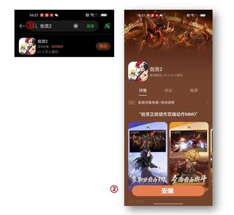 对于移动端用户,安卓用户可以在华为应用市场、小米应用商店、OPPO软件商店等主流应用商店中搜索“剑灵2”,选择官方正版进行下载。