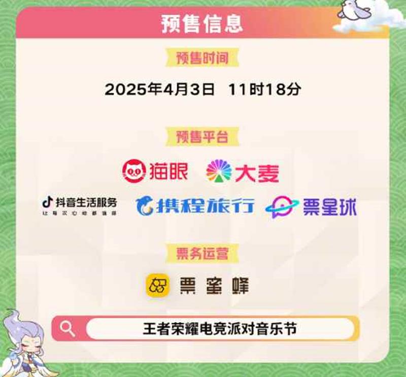 预售平台:猫眼、大麦、抖音、携程、票星球。