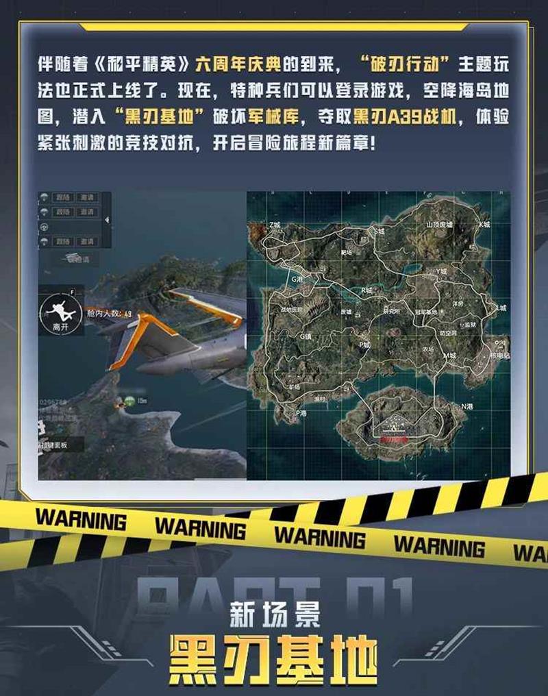 模式最大的亮点在于全新基地设定:在海岛地图的军事基地区域,全新的地图场景“黑刃基地”巍然矗立,等待特种兵们前来挑战。